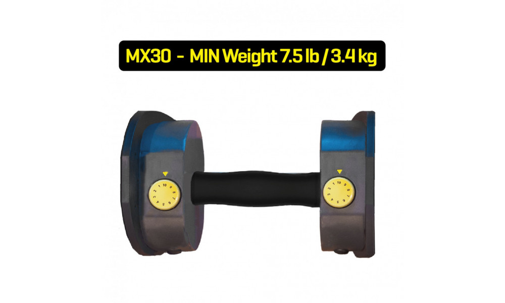 Гантель наборная MX Select MX-30 имеет инновационный механизм для выбора веса (вес 3.4-13.9 кг)